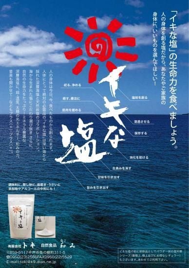 ぜひ、あなたの食卓に「イキな塩」を加え、自然のエネルギーを感じてください。健康でおいしい食事のお供にぴったりです。